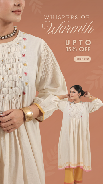Ivory Hand embroidered with smocking short kurta set