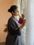 Discover elegance and comfort with our handloom gradation black choga co-ord set, a true masterpiece in design.