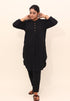 Solid Black Drop-Shoulder Co-ord Set With Black Pant