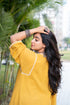 Mustard Boxy-Fit Chikankari Cotton Kurta